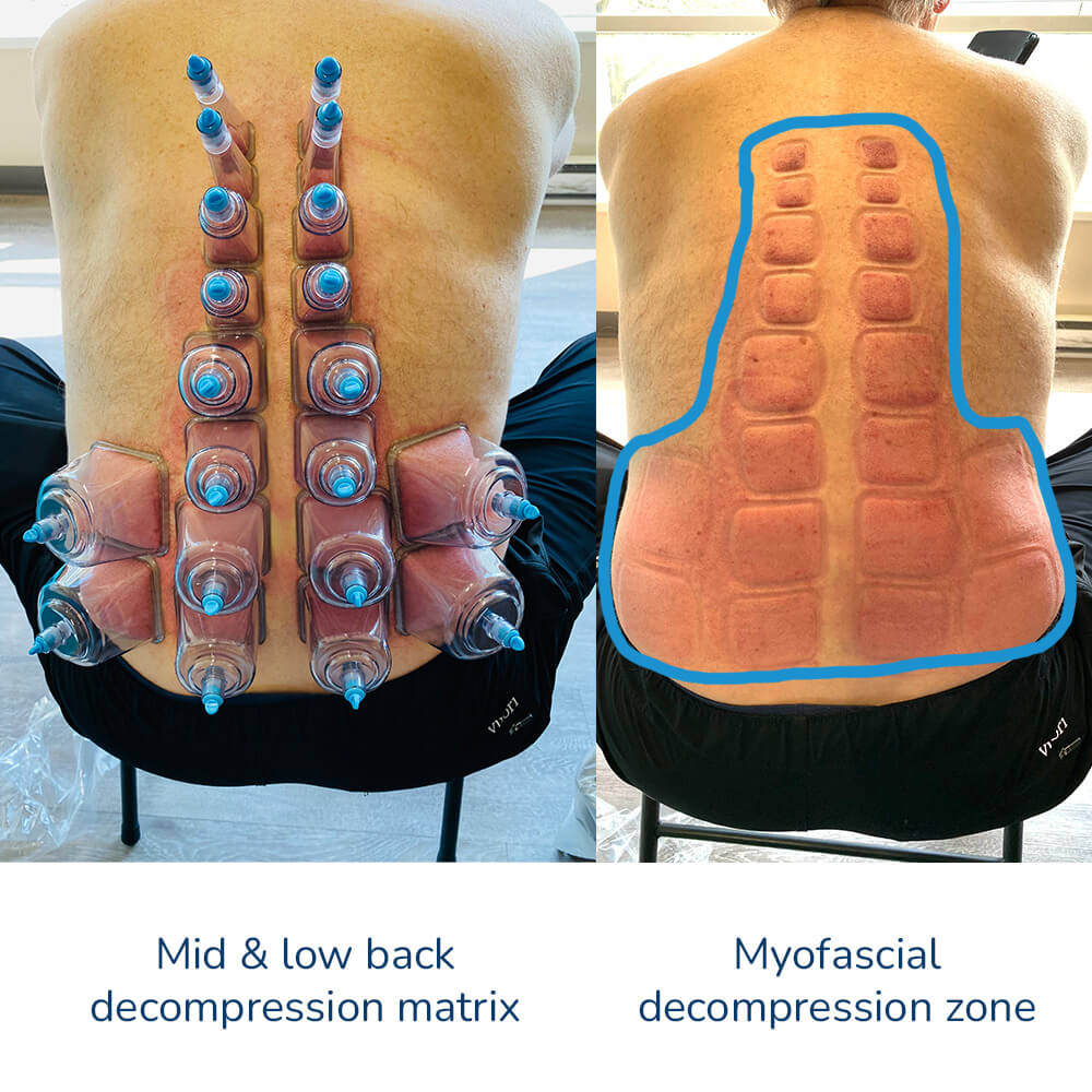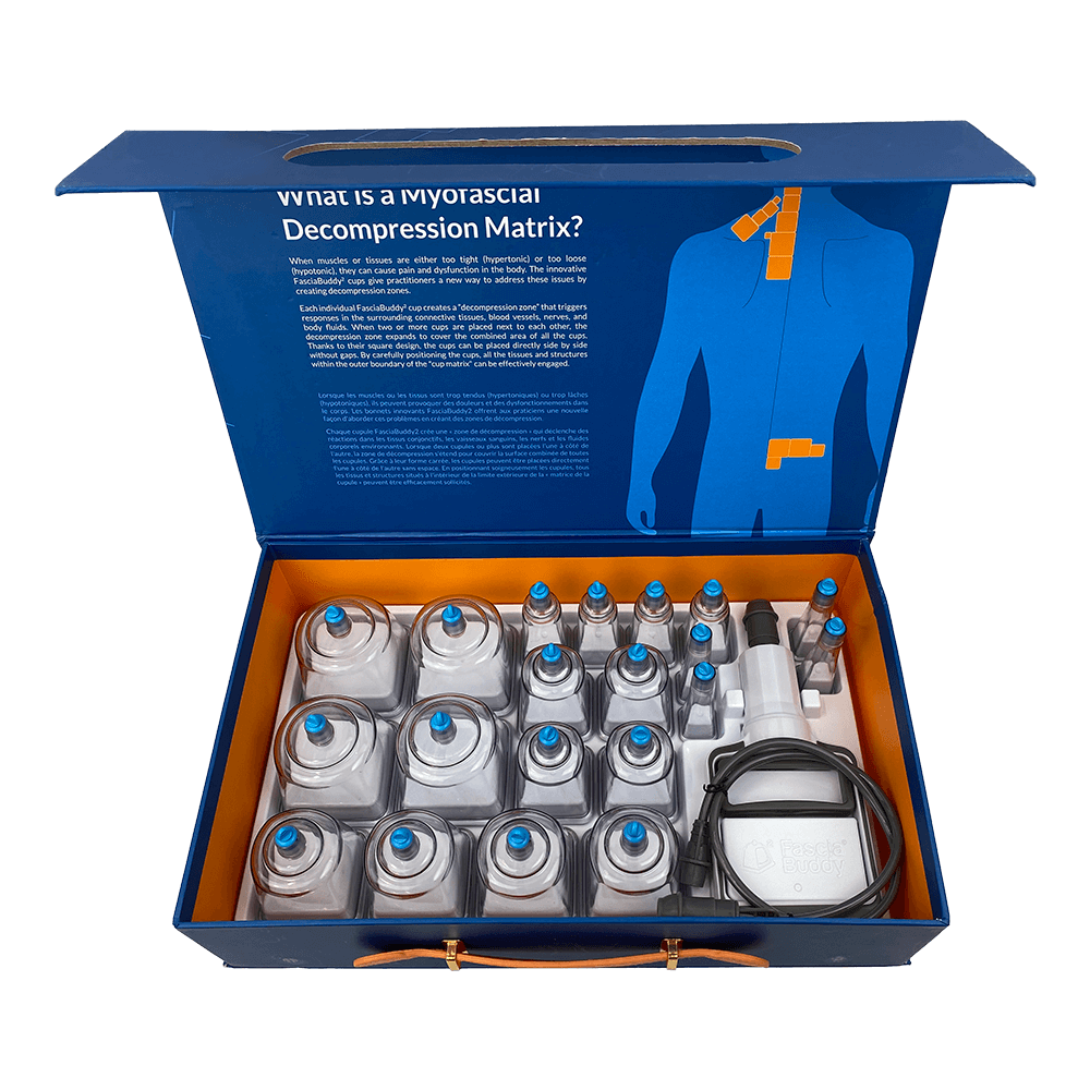 FasciaBuddy Squared cups provide a unique advantage—they fit together perfectly to create a continuous decompression zone over the target area. Whether you’re addressing pain, trigger points, or specific muscle shapes, you can select the appropriate size cup and build a customized myofascial decompression matrix.